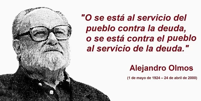 Alejandro Olmos, ya para 1982, comenzó su lucha, de moderno Quijote, contra el condicionante máximo de nuestro desarrollo como nación y atacó a la supuesta legalidad de la deuda contraída por el gobierno de facto, en el período 1976-1982.