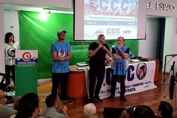 En camino al 30 aniversario de la Corriente Clasista y Combativa (CCC) se realizó en el Anfiteatro Eva Perón de ATE, en la Capital Federal, una charla abierta de la que participaron el coordinador nacional de la CCC, Juan Carlos Alderete; el delegado paritario y dirigente histórico del Astillero Río Santiago, miembro fundador de la CCC, Jorge Smith; el secretario general de la CTA Autónoma, Hugo Godoy, y el secretario general de la CTA de los Trabajadores, Hugo Yasky. Al inicio del acto, realizó un saludo Rodolfo Aguiar, Secretario General del ATE.