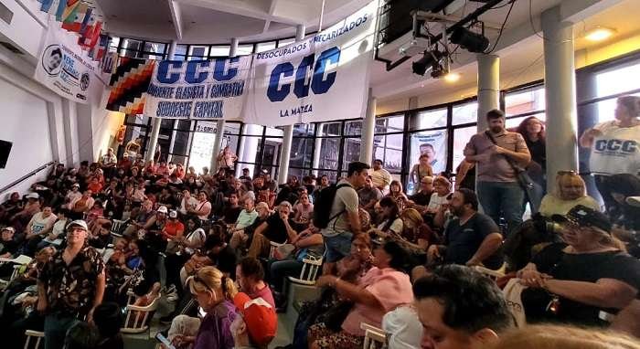 Alderete recordó que “la CCC nació en la primera Marcha Federal en 1994 y aprendimos de la CTA y del MTA en la lucha contra el menemismo por eso no podemos licuar ni vender esa historia rica que tenemos”.