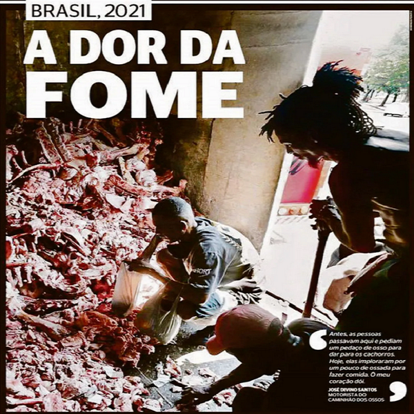 En Brasil unos 20 millones de personas pasan sin comer nada durante 24 horas cada pocos días, 24,5 millones empiezan el día sin saber cómo se alimentarán, y disminuyó la cantidad y calidad de lo que comen. Este informe se conoció después de que, hace dos semanas, se divulgaran fotos de un grupo de personas buscando comida entre una pila de despojos y huesos desechados en una fábrica de alimentos para mascotas y jabón.