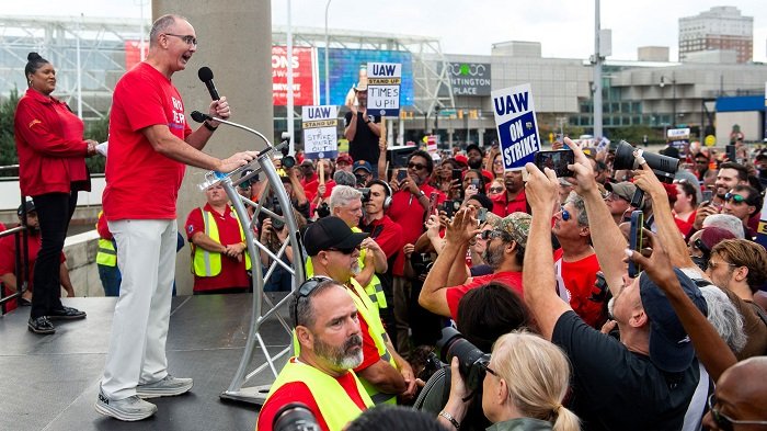 Shawn Fain informó que todos los centros de distribución de repuestos de General Motors y Stellantis estarán en huelga. Cerraremos la distribución de piezas hasta que esas dos empresas entren en razón y se sienten a la mesa con una oferta seria».