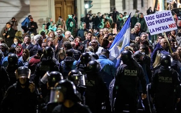 En plena Recoleta los vecinos de Cristina festejaron cuando los energúmenos continuadores del macrismo endeudador la fueron a insultar en la puerta de su domicilio particular. Y allí se produjo la expresión de la policía política de Larreta, que reprimió a la militancia que venía a echar a los insultadores. Y protegió a los votantes del cacique de Buenos Aires.