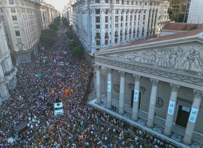 En Argentina se unieron a la marcha más de 30 organizaciones LGBTIQ+ y feministas, 50 universidades y centros de estudiantes, 30 asambleas barriales, 25 organismos de DD.HH., más de un centenar de sindicatos y casi todos los frentes políticos, excepto La Libertad Avanza, el partido de Milei.