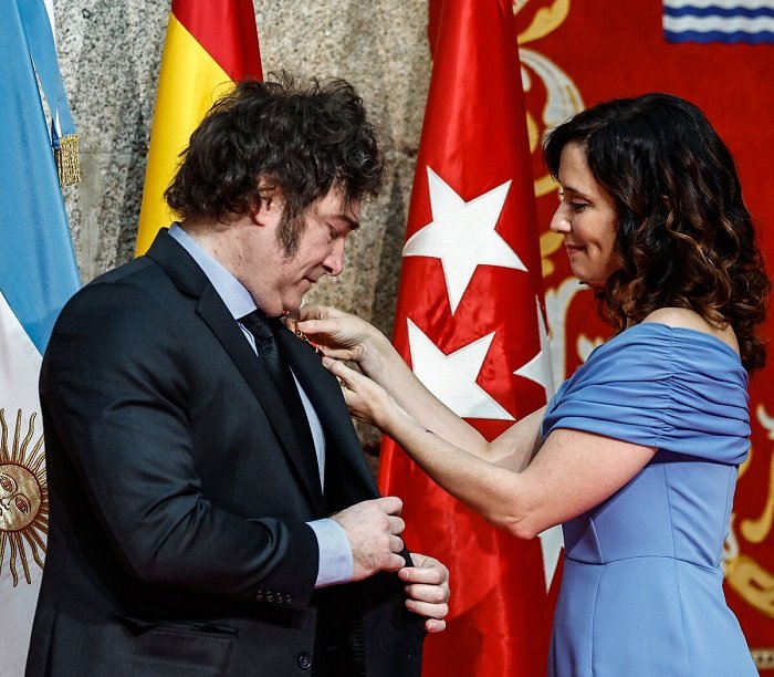 Milei recibió de Díaz Ayuso la Medalla Internacional de la Comunidad de Madrid, acto que tuvo un alto impacto político, ya que la distinción fue impugnada por el gobierno español.