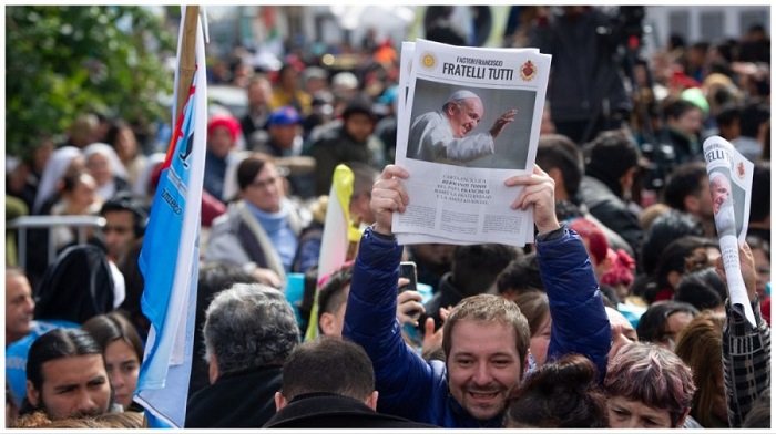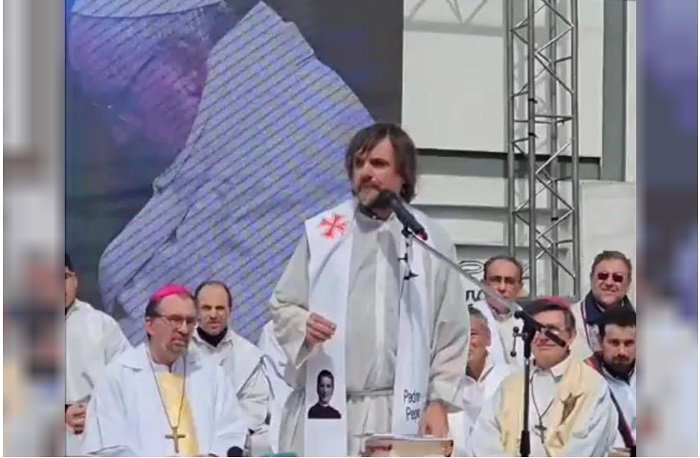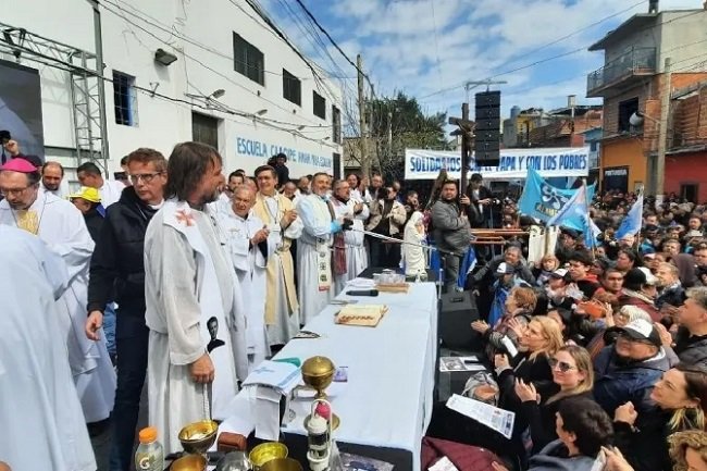 En la misa, el sacerdote José María «Pepe» Di Paola afirmó que «es indigno de un candidato decir lo que dice contra el Papa e ir en contra de la justicia social que es parte del evangelio y la doctrina social de la iglesia».
