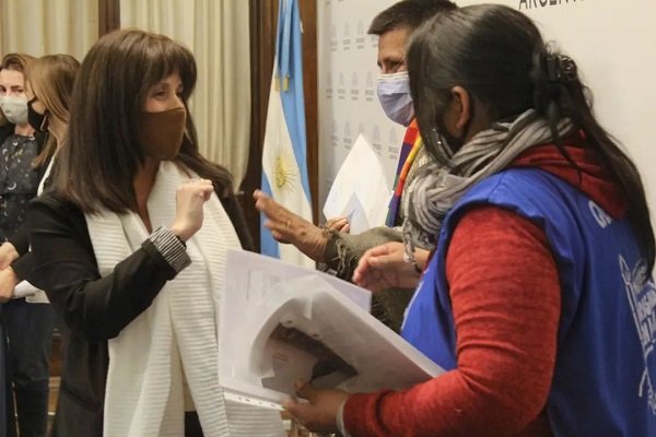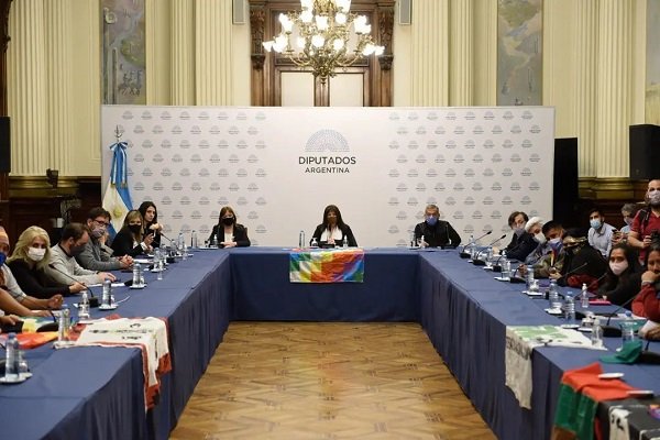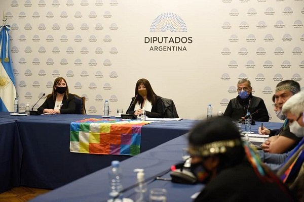Un grupo de representantes de las comunidades fueron luego recibidos en el Congreso por diputados del Frente de Todos, entre los que se contaban Juan Carlos Alderete, Verónica Caliva, Paula Penacca, Ayelen Spósito, María Rosa Martínez, Lucila Masin y Hernán Pérez Araujo, entre otros.