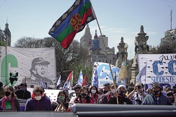 Este miércoles hermanas y hermanos de pueblos originarios movilizaron al Congreso Nacional, acompañados por organizaciones políticas y sociales. Exigen una nueva prórroga de la ley 26.160 de Emergencia Territorial Indígena, que prohíbe los desalojos de comunidades y tiene fecha de vencimiento para el mes próximo. Una delegación de representantes de las distintas organizaciones fue recibida por legisladores del Frente de Todos, que se comprometieron a trabajar para lograr la prórroga.