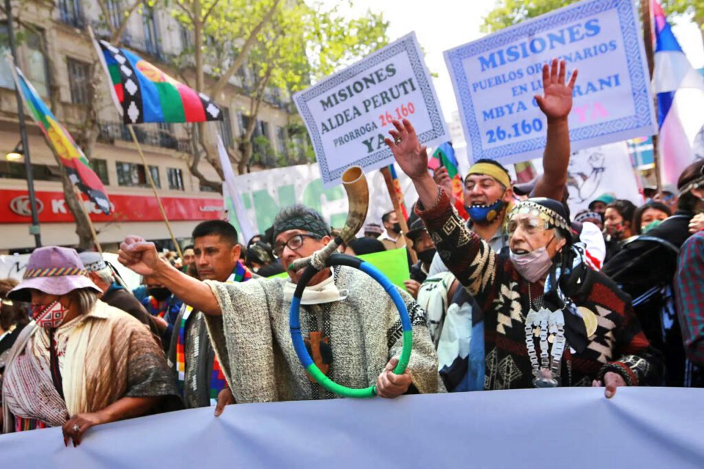 Antes de asistir al encuentro, los referentes de las diferentes comunidades se concentraron más temprano en la intersección de la Avenidas de Mayo con la 9 de Julio y desde allí, se movilizaron hacia el Congreso Nacional para pedir el debate de la nueva prórroga, que debe aprobar aún el Senado y enviarla para su debate a Diputados.
