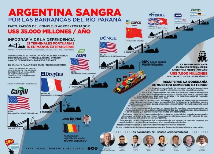 Esta estafa es posible por como esta organizado el comercio exterior en nuestro país que lejos de ser argentino hoy esta dominado por un grupo recudido de multinacionales principalmente estadounidenses pero también europeas y chinas.
