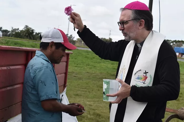 Gramajo precisó que “movilizados por la fe, la necesidad del encuentro, la unidad, caminamos en Defensa del Trabajo y la Producción, por la Protección del Cinturón Hortiflorícola, por el derecho a la salud y contra el hambre que golpea a las y los productores y a consumidores por igual, por Tierra para Trabajar y mejores condiciones para la Pesca Artesanal”.